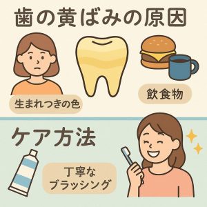 歯の色が黄色いのはなぜ?体質・食生活・ケア方法を解説